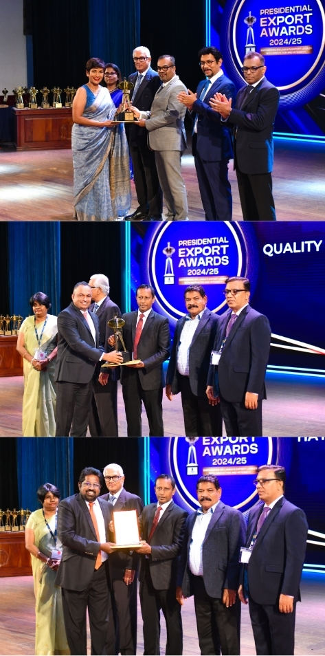 இலங்கையின் ஏற்றுமதிப் பொருளாதாரத்தின் முக்கிய உந்துசக்தியாகத் தனது நிலையை மீண்டும் உறுதிப்படுத்தியுள்ள Hayleys Agriculture Holdings Limited (ஹேலீஸ் அக்ரிகல்ச்சர் ஹோல்டிங்ஸ் லிமிடெட்) நிறுவனம், 2025 டிசம்பர் 11ஆம் திகதி கொழும்பு BMICH இல் இடம்பெற்ற மதிப்புமிக்க ஜனாதிபதி ஏற்றுமதி விருதுகள் 2024/2025 விழாவில் பல்வேறு கௌரவங்களை தனதாக்கியுள்ளது. ஏற்றுமதியாளர்களுக்கு வழங்கப்படும் நாட்டின் உயரிய தேசிய கௌரவமான இந்த விருது விழாவில், Hayleys குழுமத்தின் HJS Condiments Limited, Quality Seed Company Limited, Hayleys Agro Biotech ஆகிய மூன்று வணிகப் பிரிவுகள் விருது வழங்கி கௌரவிக்கப்பட்டன. இந்த விருதுகள், விவசாய வணிகத்தில் Hayleys குழுமத்தின் பன்முகத்தன்மை, ஈடுகொடுக்கும் தன்மை, சர்வதேச போட்டித்தன்மை ஆகியவற்றை பறைசாற்றுகின்றன.