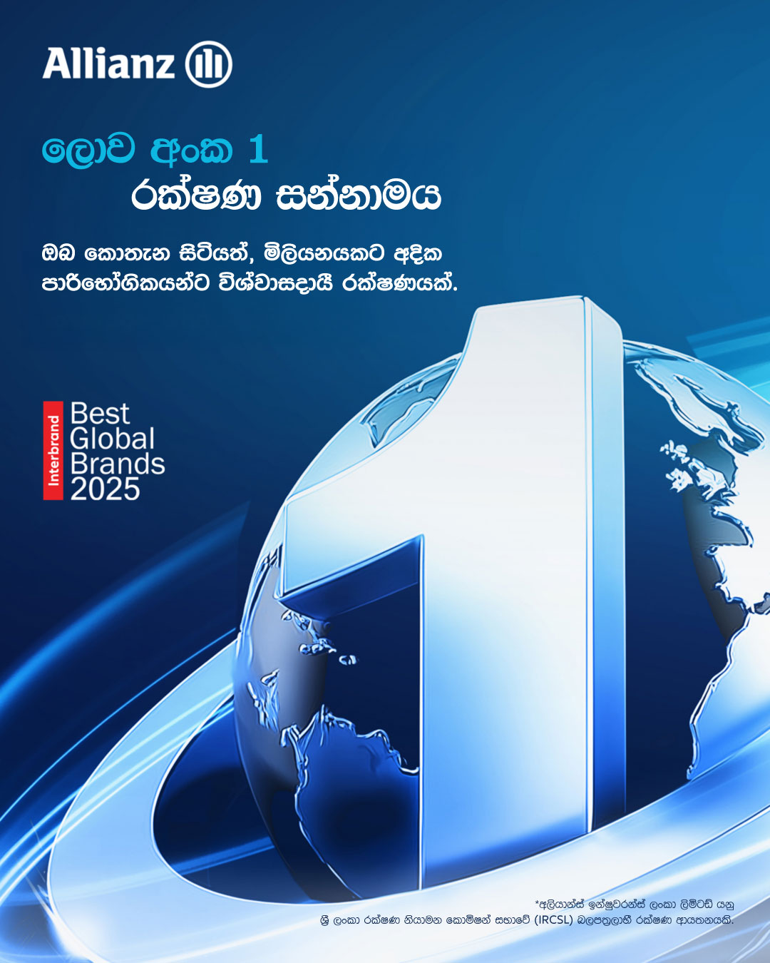 Interbrand வெளியிட்டுள்ள 2025 க்கான மிகச் சிறந்த சர்வதேச வர்த்தகநாமங்கள் தரப்படுத்தலில், உலகின் நம்பர் 1 காப்புறுதி வர்த்தகநாமமாக மீண்டும் ஒரு முறை அலியான்ஸ் அங்கீகாரத்தைச் சம்பாதித்துள்ளதுடன், தொடர்ந்து ஏழாவது ஆண்டாகவும் இந்த உச்ச ஸ்தானத்தை அது தக்க வைத்துள்ளமை குறிப்பிடத்தக்கது. வரலாற்றிலேயே அதியுயர் வர்த்தகநாம மதிப்பையும், மிக வலுவான வளர்ச்சியையும் இவ்வாண்டில் அலியான்ஸ் அடையப்பெற்றுள்ளதுடன், முறையே 23.5 பில்லியன் அமெரிக்க டொலர் தொகையிலிருந்து, 20% அதிகரிப்புடன் 28.2 பில்லியன் அமெரிக்க டொலர் தொகையாகவும், சர்வதேச அளவில் இரு ஸ்தானங்கள் எழுச்சி கண்டுள்ளமையையும் அவை குறித்து நிற்கின்றன.